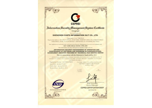 信息安全管理體系認(rèn)證證書(shū)(正本英文)