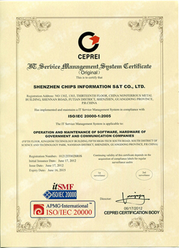 2012年6月,由獨立第三方認證機構(gòu)對齊普生公司的ISO20000管理體系完成了嚴格的審核程序。齊普生順利通過此次審核,獲得ISO/IEC20000管理體系認證,成為同行業(yè)中為數(shù)不多的擁有該認證資質(zhì)的IT企業(yè)。公司總經(jīng)理喬東斌、副總經(jīng)理兼技術(shù)總監(jiān)高勇、服務(wù)產(chǎn)品交付管理部部門經(jīng)理監(jiān)總監(jiān)孫愛華及各部門流程負責人參與了審核全過程。